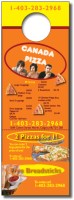 Cardstock Doorhanger Printed Full Colour on High Quality 12 pt Gloss Stock. There are Two Tier Off Magnet Coupons at the Bottom ideal for coupon discounts and company information that will last for years. Tier off Magnet Coupon is 4 x 4 with a 30 mil coupon magnet thickness.