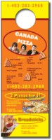 Cardstock Doorhanger Printed Full Colour on High Quality 12 pt Gloss Stock. There are Two Tier Off Magnet Coupons at the Bottom ideal for coupon discounts and company information that will last for years. Tier off Magnet Coupons are 2 x 4 each for a 30 mil coupon magnet thickness